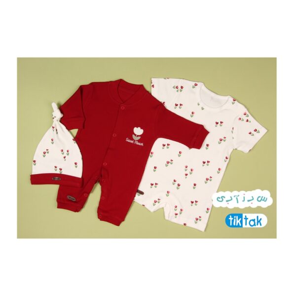 ست لباس نوزادی تیک تاک طرح گل لاله (Tik Tak) | خرید تکی و ست کامل