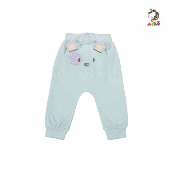 شلوار تیکه دوزی فیروزه ای نوزادی طرح خرس کوچک برند دانالو