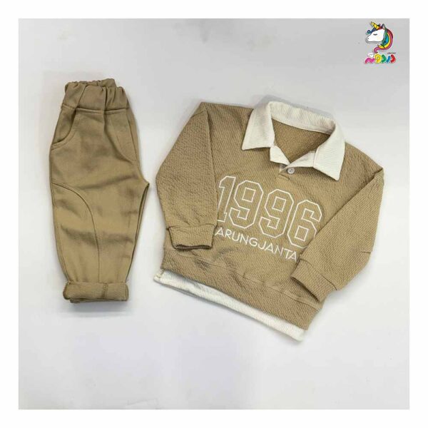 بلوز شلوار کودکانه نسکافه ای يقه دار