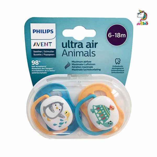 پستانک دو عددی الترا انیمال 18 – 6 ماه لاک پشت و پنگوئن اونت Avent Ultra Air Animals