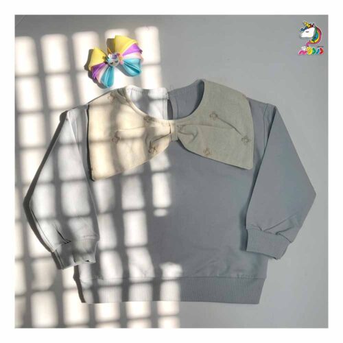 بلوز تک یقه پاپیون طوسی بچگانه