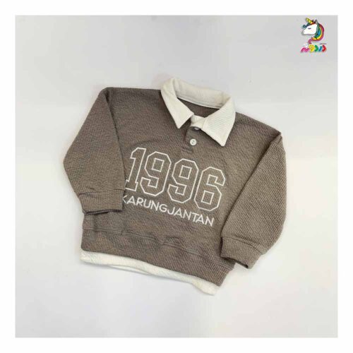بلوز شلوار کودکانه خاکی یقه دار