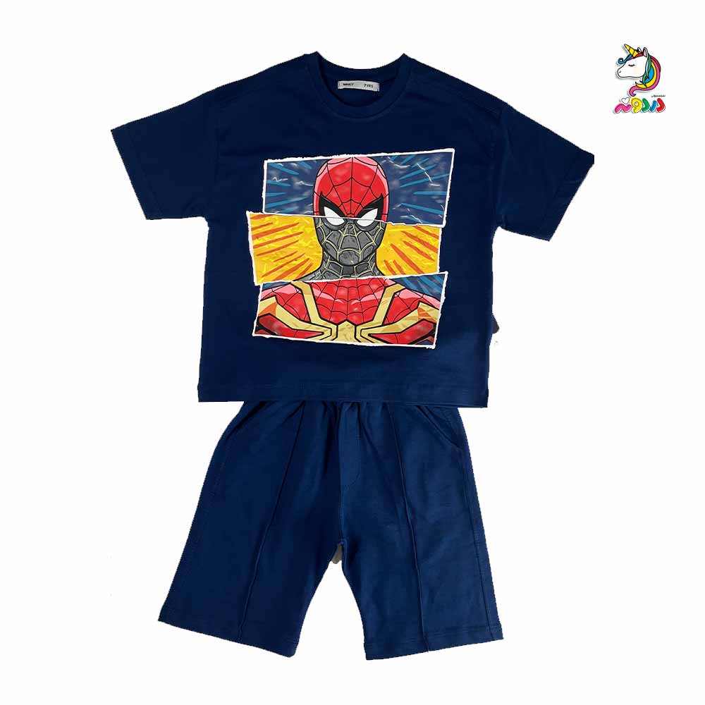 تیشرت و شلوارک بچگانه آبی کاربنی مرد عنکبوتی بزرگ (7 سال تا 10 سال)