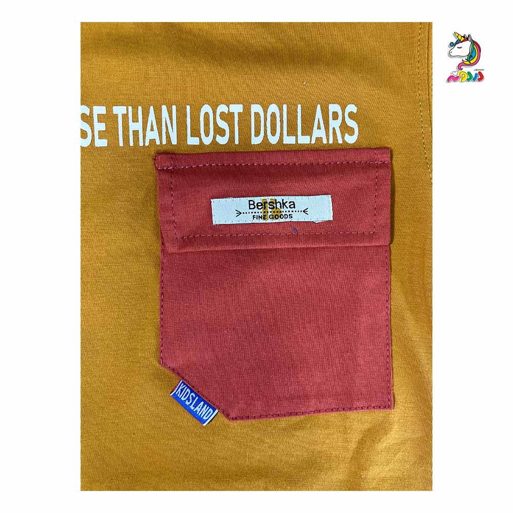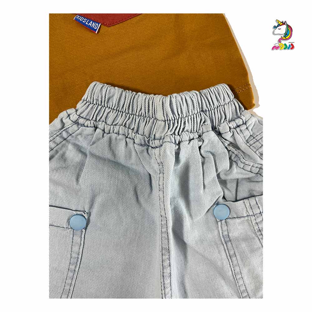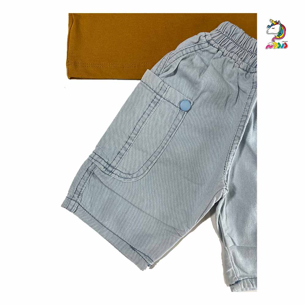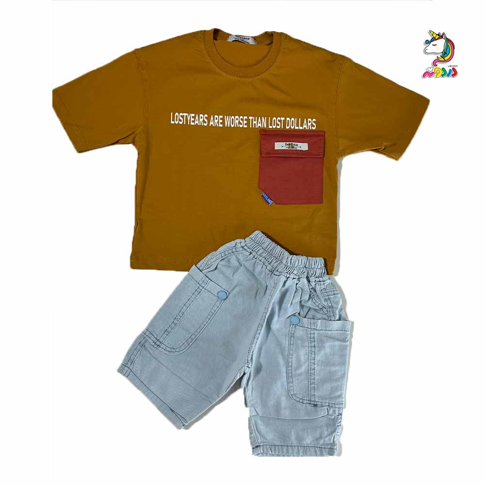 تیشرت و شلوارک بچگانه جیب دار خردلی