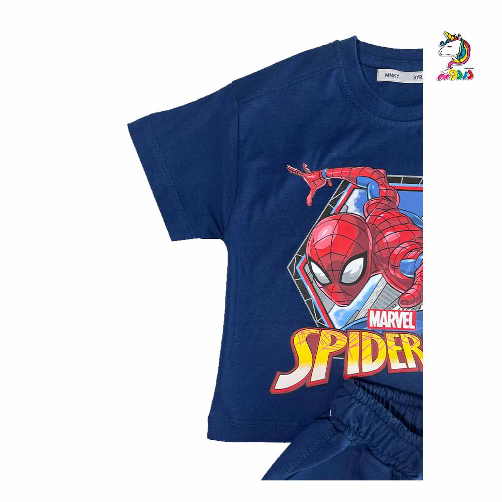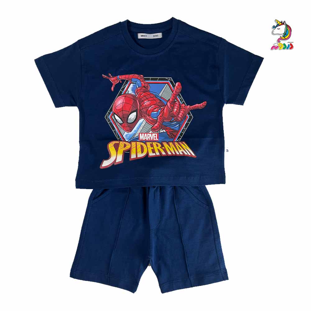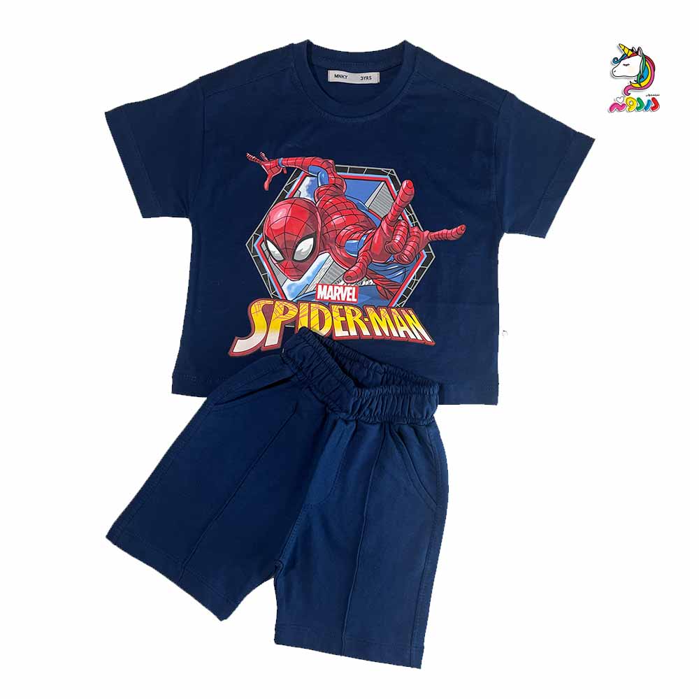 تیشرت و شلوارک بچگانه آبی کاربنی مرد عنکبوتی کوچک (3 سال تا 6 سال)