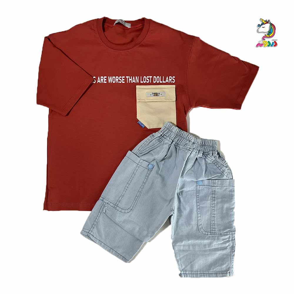 تیشرت و شلوارک بچگانه جیب دار سفید