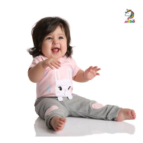 آستین کوتاه دخترانه خرگوش تکه دوزی برند برگ سبز