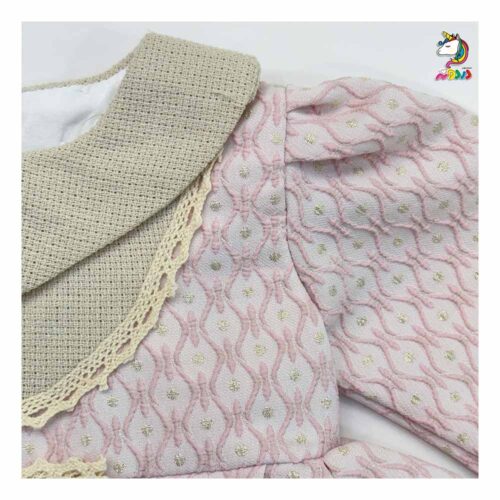سارافون ژاکارد جلو دکمه صورتی بچه گانه