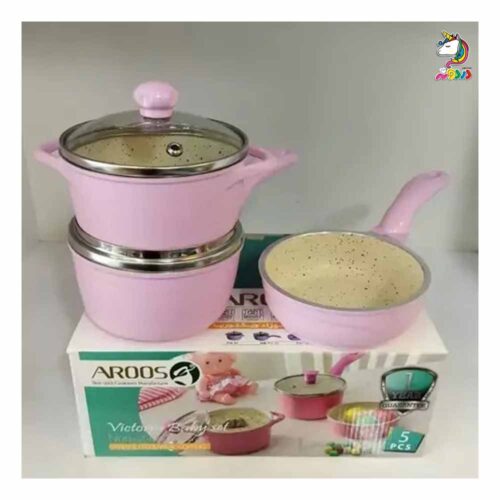 سرویس قابلمه گرانیتی 5 پارچه نوزادی عروس سایز کوچک صورتی