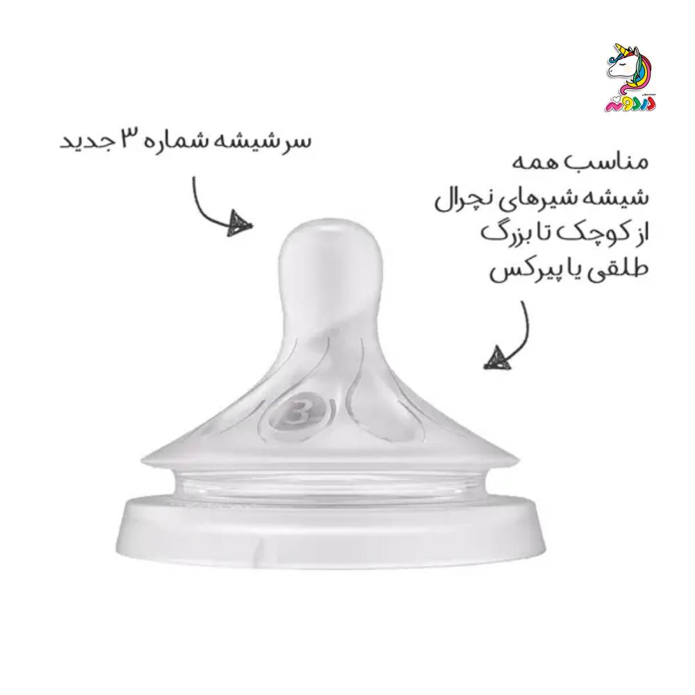 • جریان شیر متوسط (سه قطره) – مناسب برای تغذیه نوزاد در حال رشد با اشتهای بیشتر