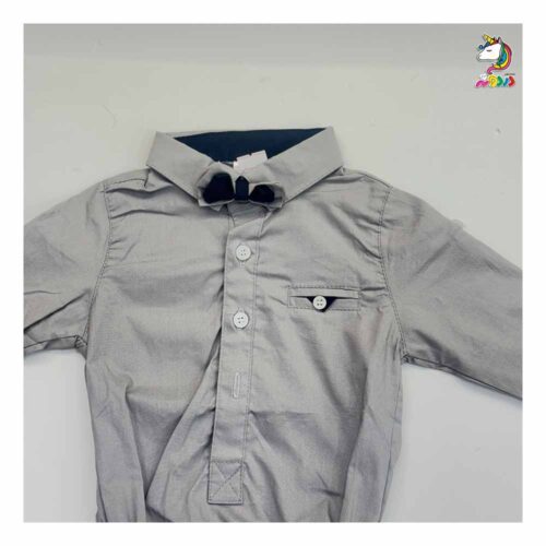 شومیز بادی طوسی پاپیون دار پسرانه مجلسی