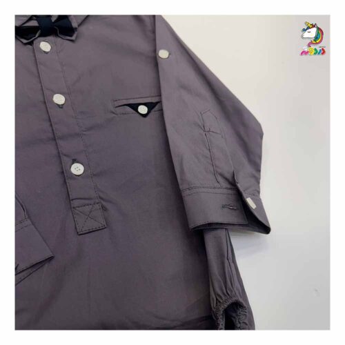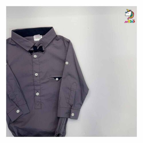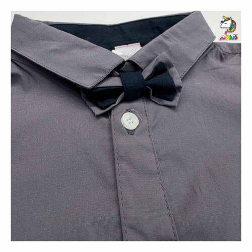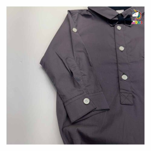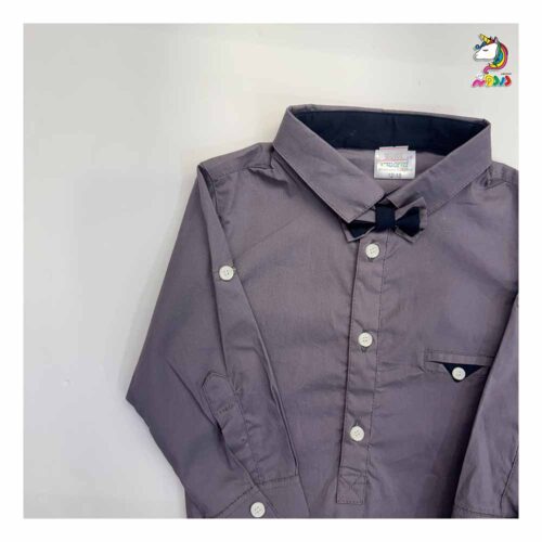 شومیز بادی پسرانه طوسی بنفش مجلسی پاپیون دار