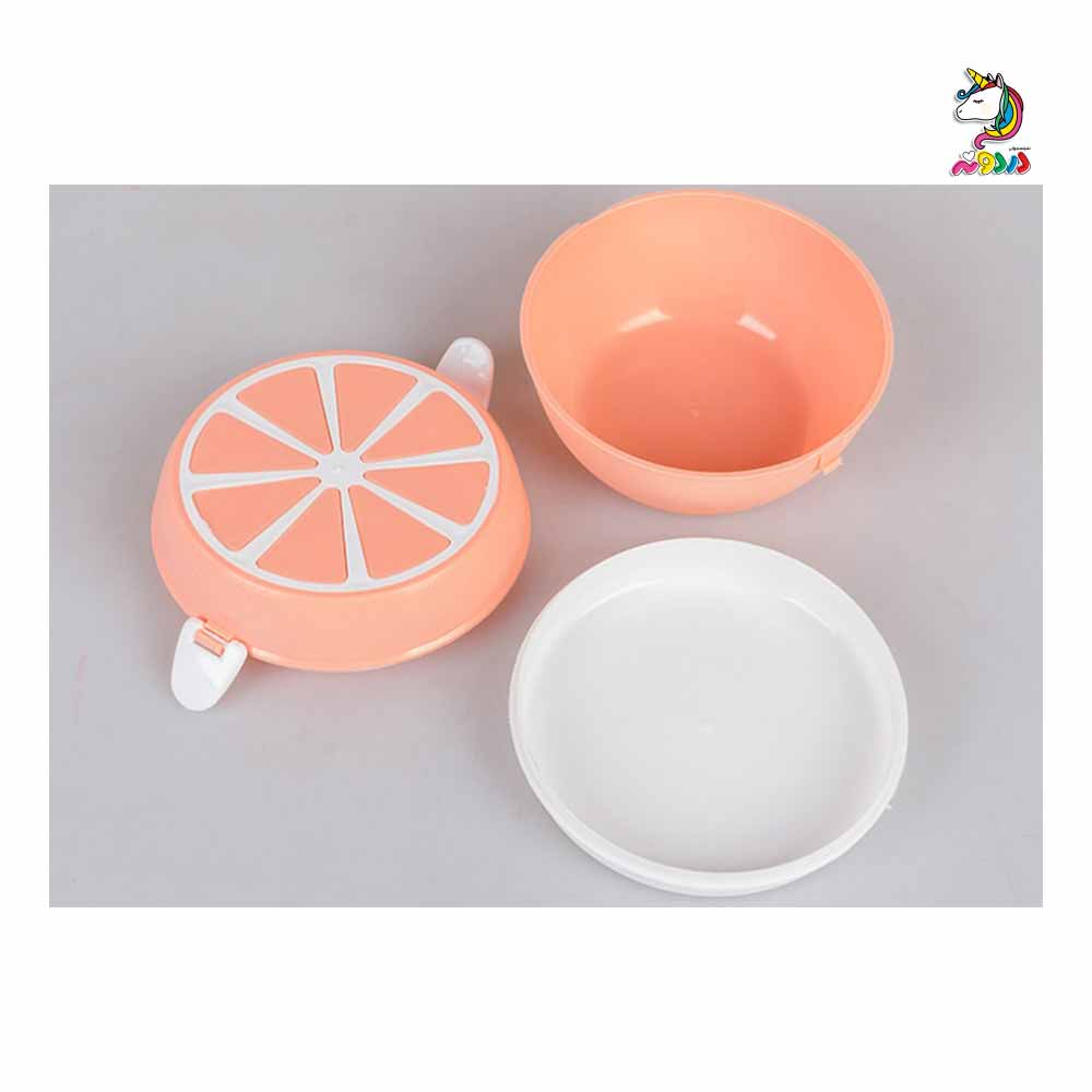 ظرف غذای دو طبقه میوه ای(معروف به پرتقالی) رو داره که دارای دو طبقه مجزا هستش و بخاطر طراحی ساده ، فانتزی و کاربردی داره .