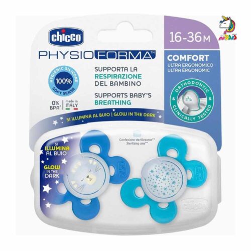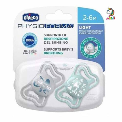 پستانک لایت PhysioForma چیکو یک پستانک سبک و ارتودنسی با سری سیلیکونی و فاقد BPA است که به رشد مناسب دهان و دندان نوزاد کمک می‌کند.