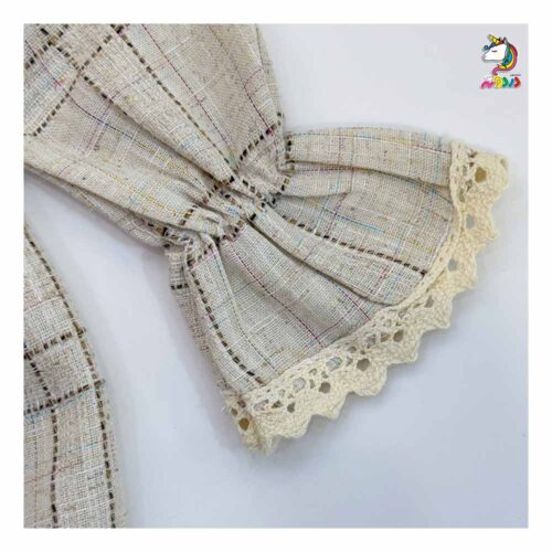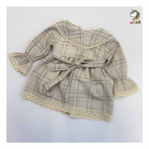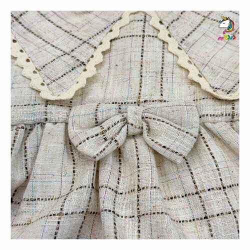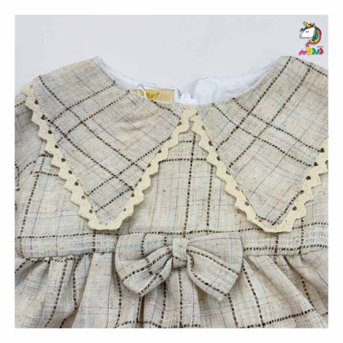 پيراهن يقه خرگوشی چهارخونه کرم بچه گانه