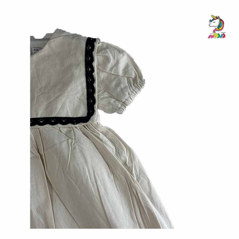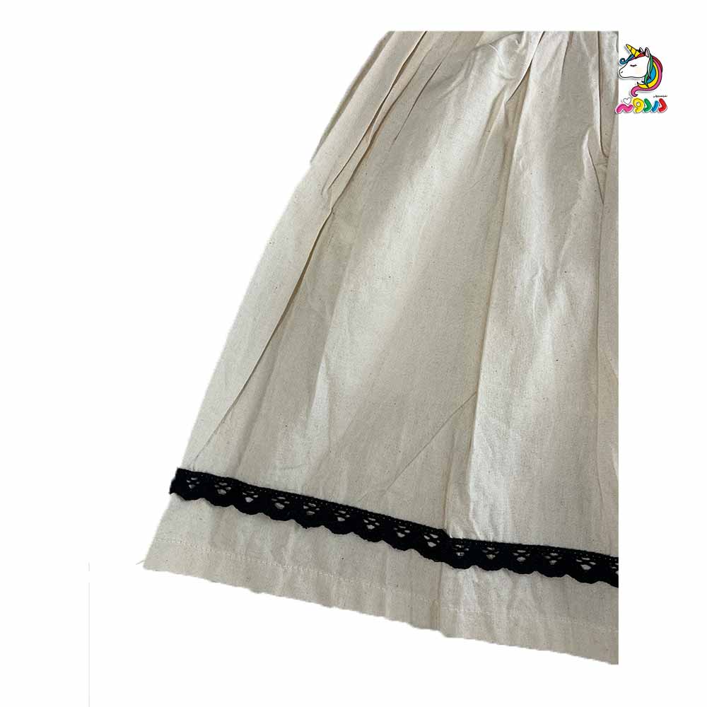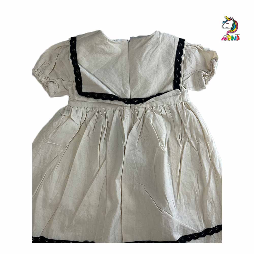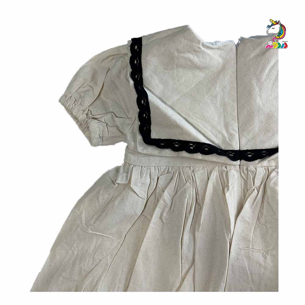 پیراهن لنین یقه خشتی کرم مشکی بچگانه – ترکیب خاص از سادگی و استایل